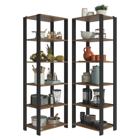 Kit con 2 Estantes Multiuso 5 Niveles 118cm Marrón/Negr...