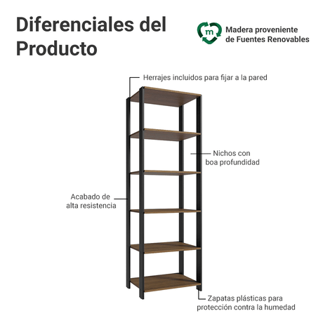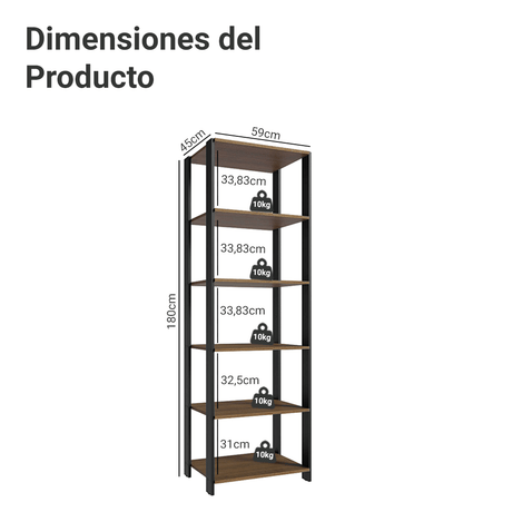 Estante Multiuso 5 Niveles 59cm Marrón/Negro