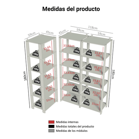 Kit con 2 Estantes Multiuso de Esquina 5 Niveles 118cm ...