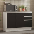 Gabinete Bajo para Fregadero 120 cm 2 Puertas 3 Cajones (Con Encimera) Glamy Blanco/Negro