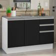 Gabinete Bajo para Fregadero con Accesorios de Cocina 120 x 60 cm 2 Puerta 3 Cajones (Con Encimera) Glamy Blanco/Negro
