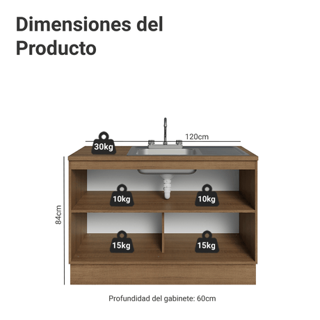 3x de $ 1,309.67 sin intereses30% OFF$ 3,92900$ 5,62700Precio unitario /AgotadoMueble de Cocina para Fregadero 120 x 60 cm 2 Puertas (...