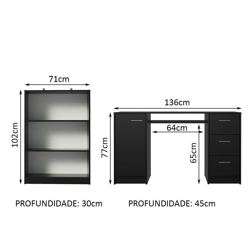 Escritorio Alaska + Estante Librero 6907 Negro