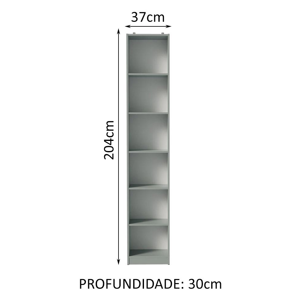 Dimensiones totales de la estantería: 204 cm alto x 37 cm ancho x 30 cm fondo.