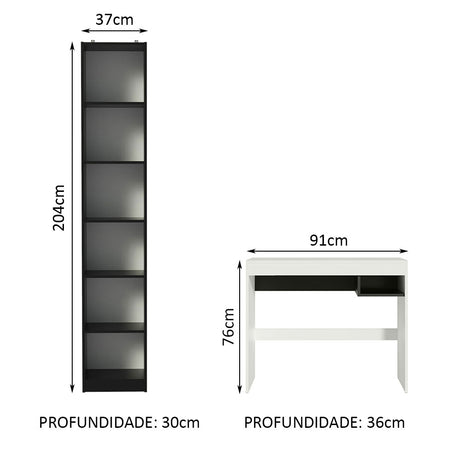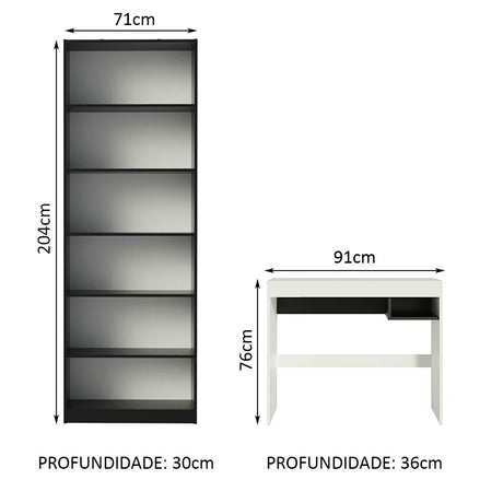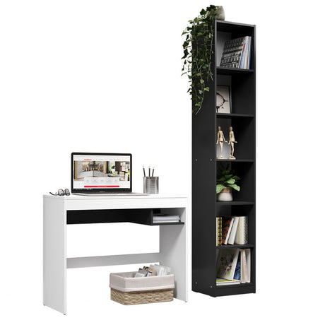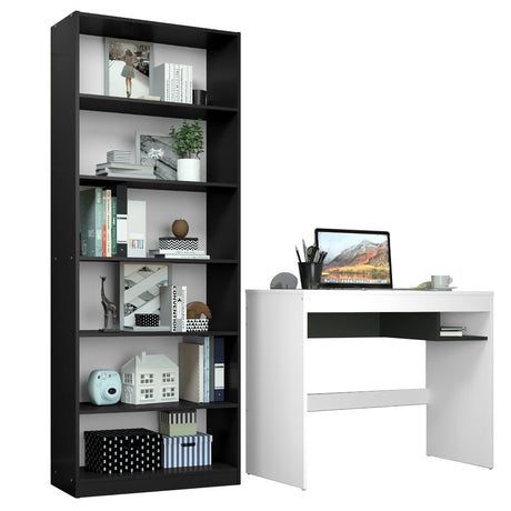 Escritorio Rubi + Estante Librero 6908 Blanco/Negro