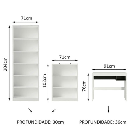Escritorio Rubi + Estante 6908 + Estante 6907 Blanco/Ne...