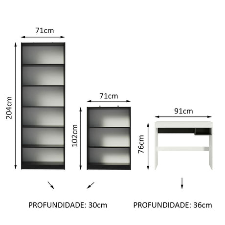 Escritorio Rubi + Estante 6908 + Estante 6907 Negro/Bla...