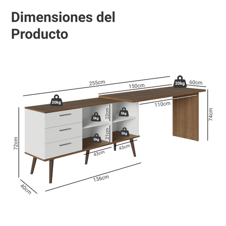 Escritorio Rubi + Estante Librero 6906 Blanco