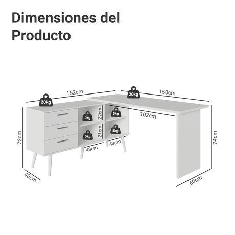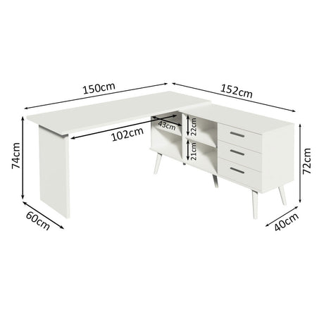 Escritorio Esquinero con 3 Cajones Blanco Lisboa