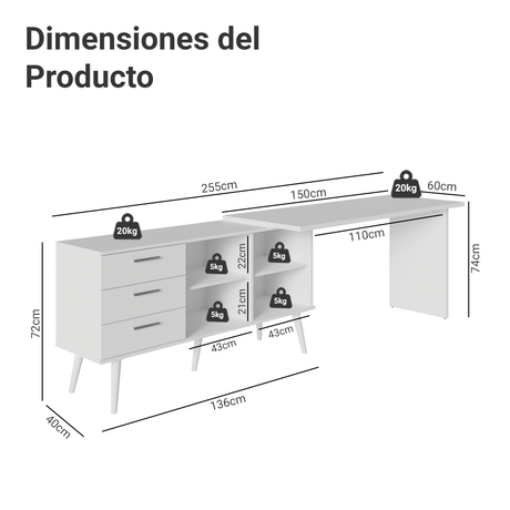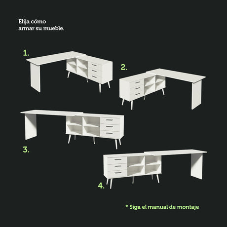 Escritorio Alaska + Estante Librero 6906 Blanco
