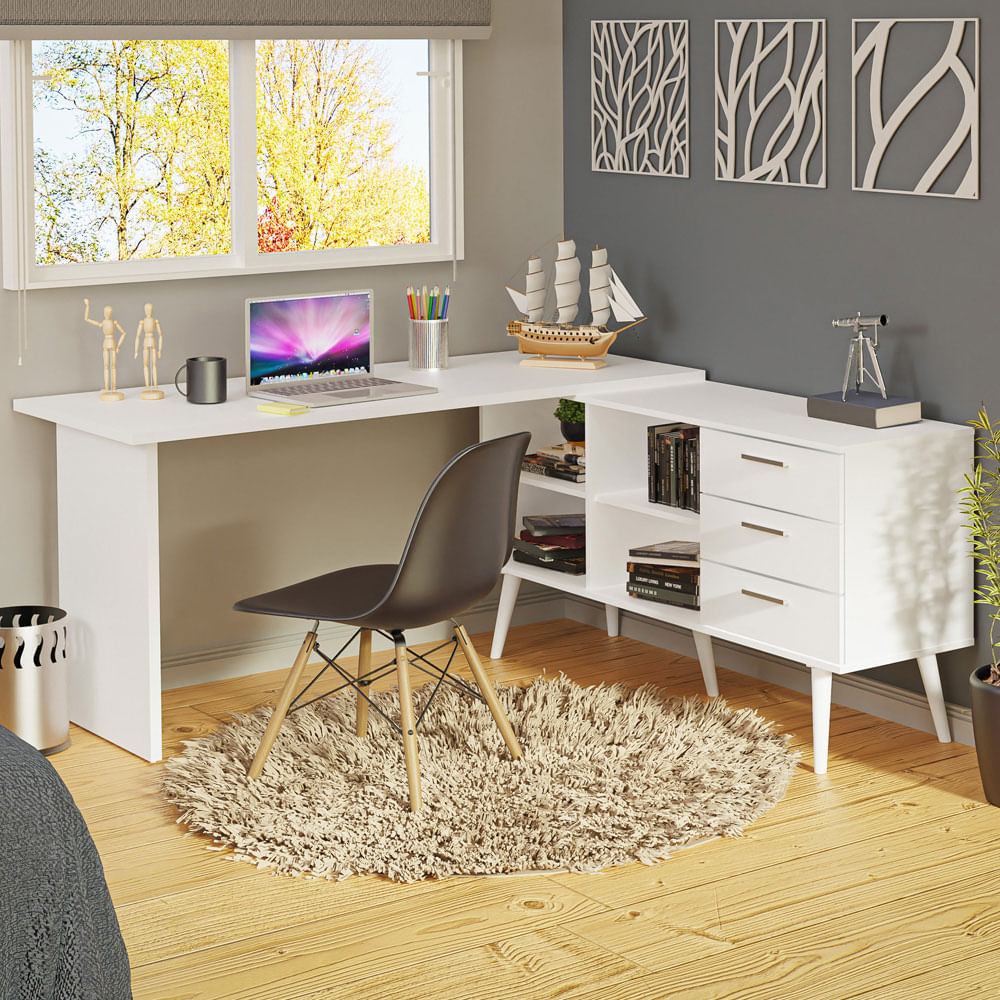 Escritorio Esquinero con 3 Cajones Blanco Lisboa