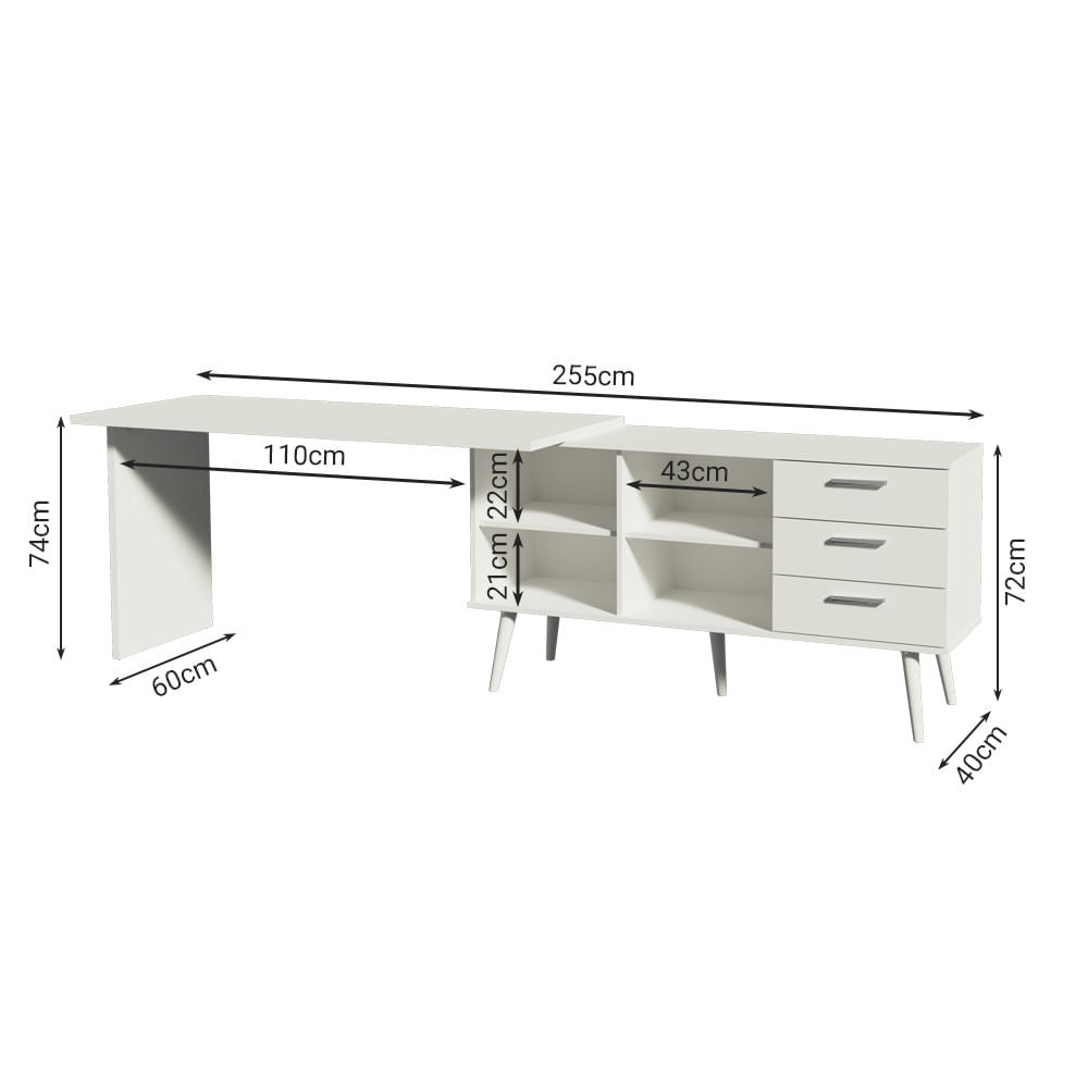 Recto: 74 cm de alto x 255 cm de ancho x 60 cm de fondo.