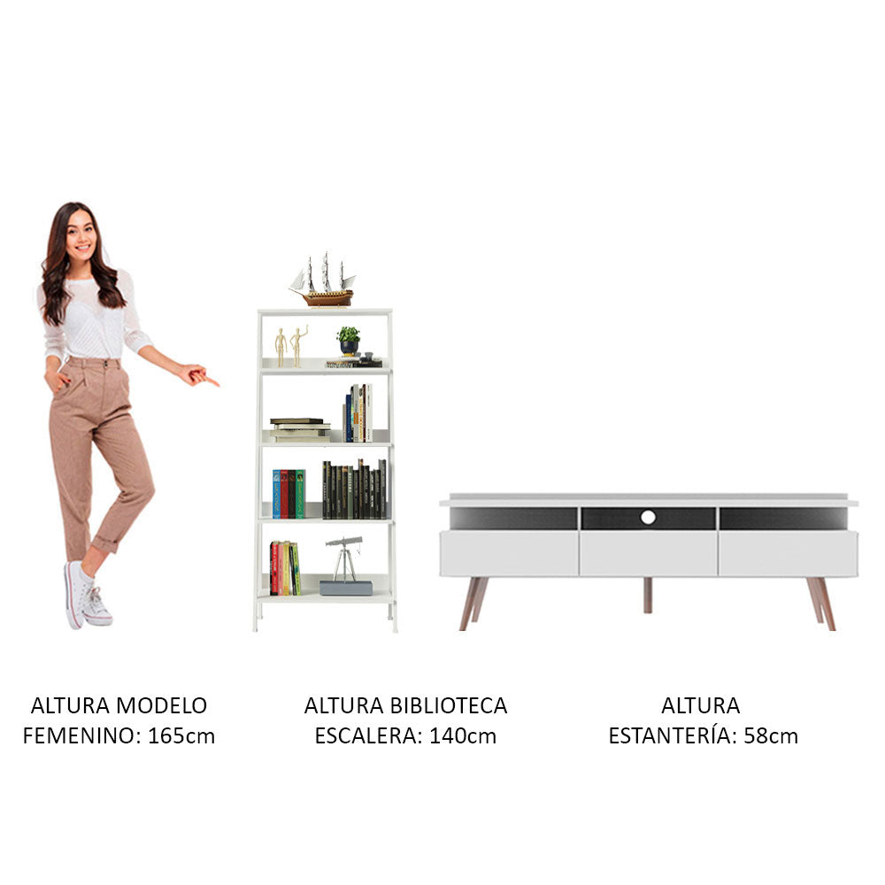 Este kit incluye el centro de entretenimiento para TV Londres y la biblioteca en forma de escalera con 4 niveles. Son la opción perfecta para actualizar tu hogar siguiendo las últimas tendencias en decoración mundial.