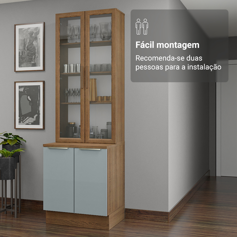 Muy elegante, el cristalero tiene dos puertas de vidrio y un amplio espacio interno para acomodar vajilla, copas y otros artículos de forma organizada.