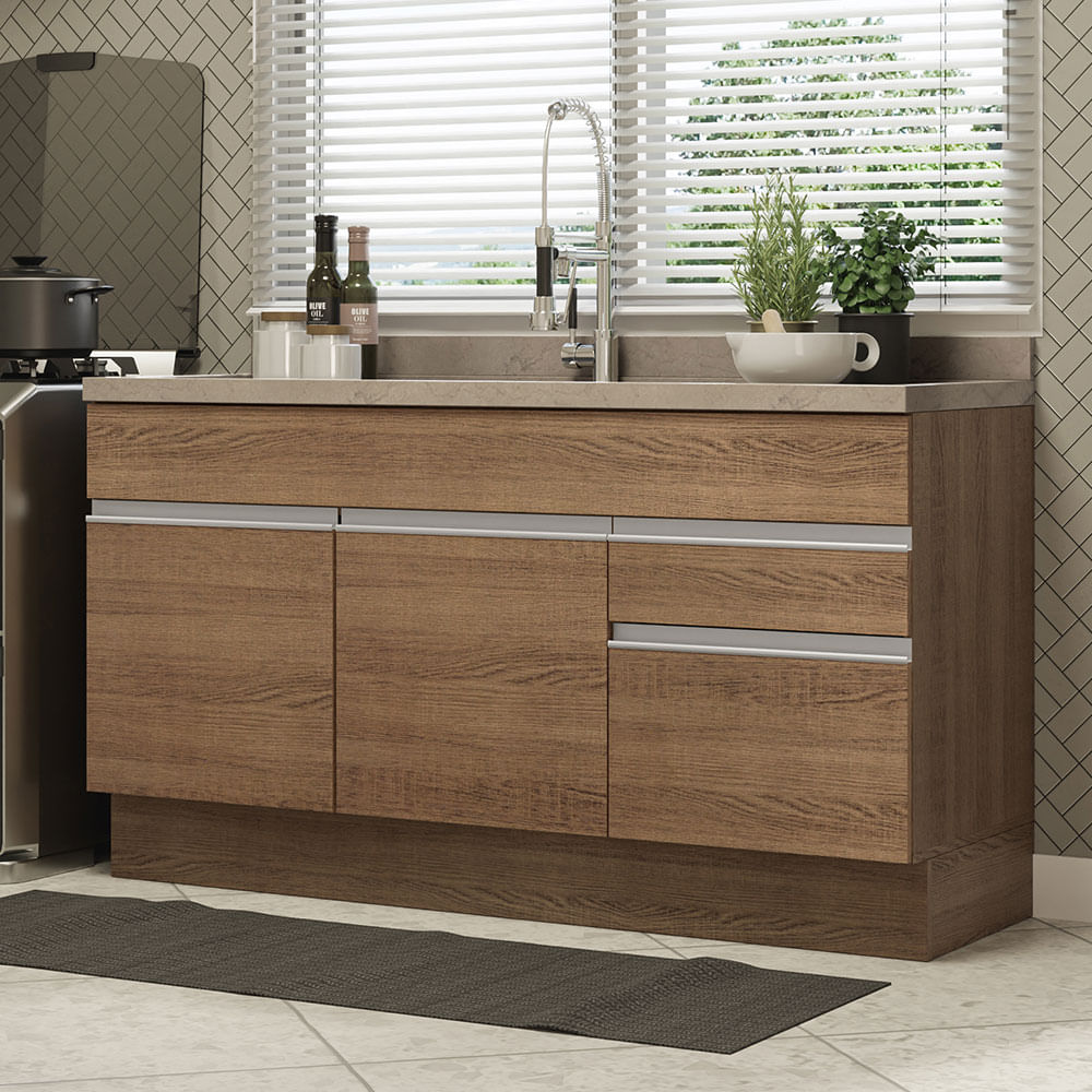 Mueble de Cocina Madesa Glamy 150 cm 2 Cajones 2 Puertas (Sin Tablero Ni Fregadero) Marrón