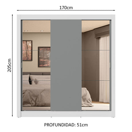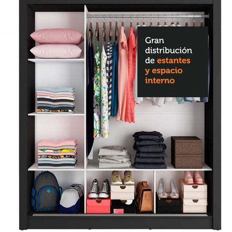 Clóset Soltero 2 Puertas Corredizas con Espejo 2 Cajone...