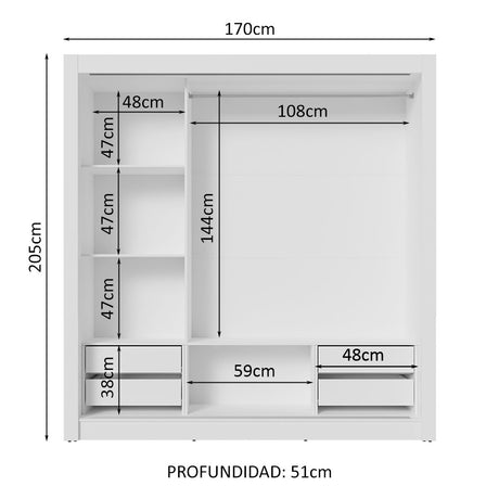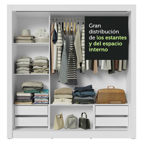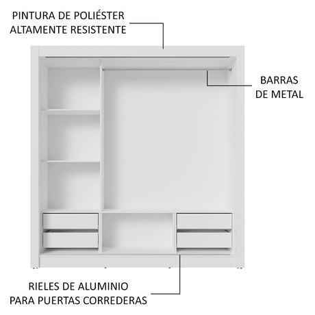 Clóset Soltero 2 Puertas Corredizas con Espejo 4 Cajone...