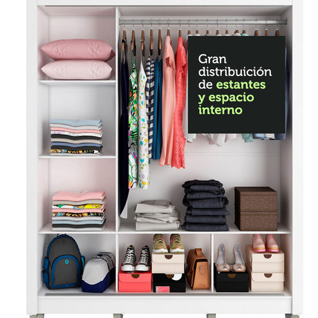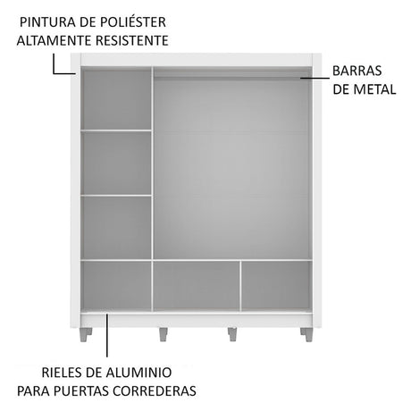 Clóset Matrimonial 3 Puertas Corredizas 4 Cajones Blanc...