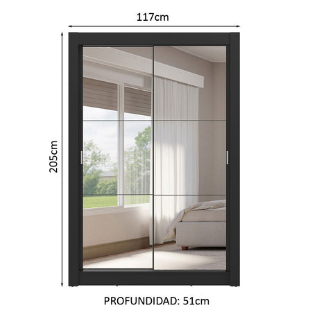 - AgotadoClóset 2 Puertas Corredizas con Espejos Negro Milano 9x de $ 1,087.67 sin intereses13% OFF$ 9,78900$ 11,25700Precio unitario /Agotado