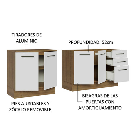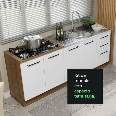 Mueble de Cocina 200cm Con Tarja Agata Marrón/Blanco