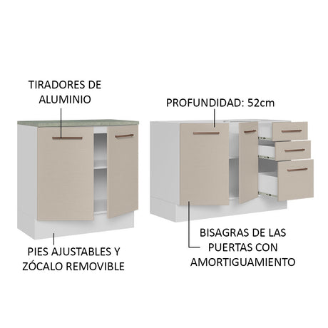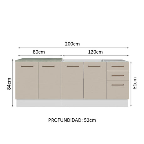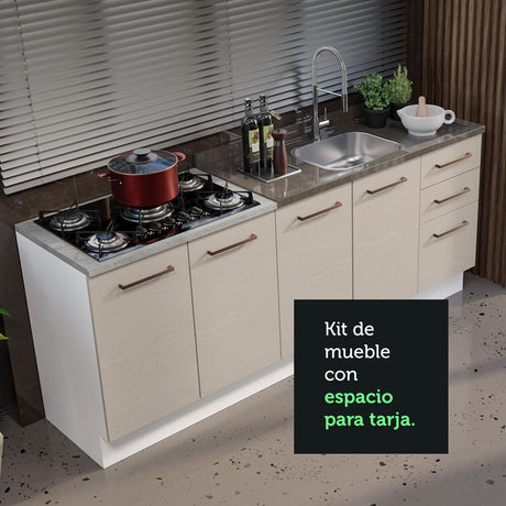Mueble de Cocina 200cm Con Tarja Agata Blanco/Crema