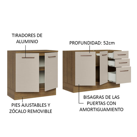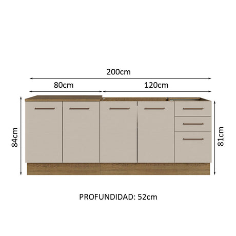 Mueble de Cocina 200cm Con Tarja Agata Marrón/Crema