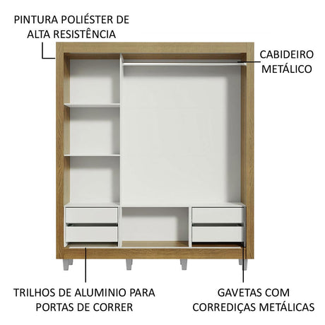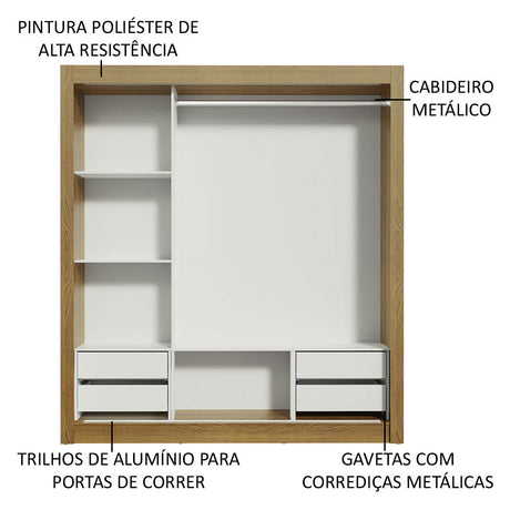 Clóset Soltero Dallas Plus 2 Puertas Correderas 4 Cajon...