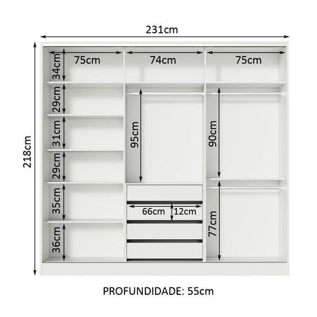 Clóset Matrimonial 100% MDF Eros 3 Puertas Correderas c...