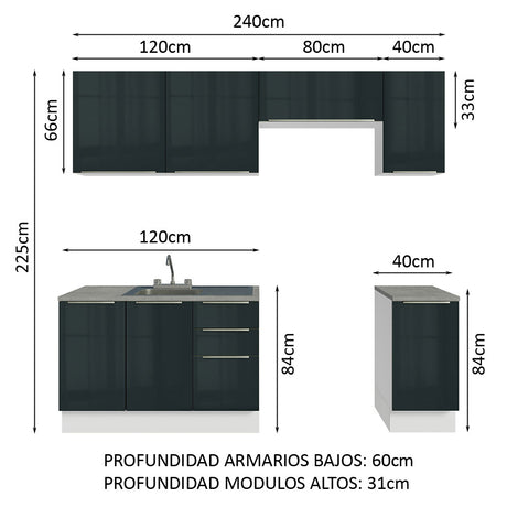 Cocina Integral con Accesorios 240cm Lux Blanco/Negro