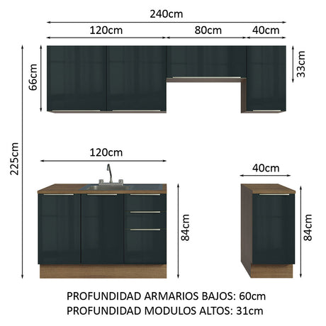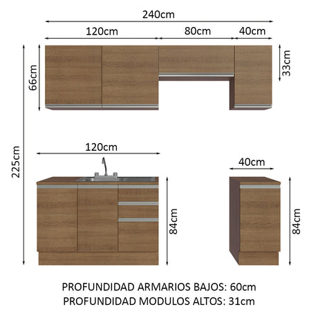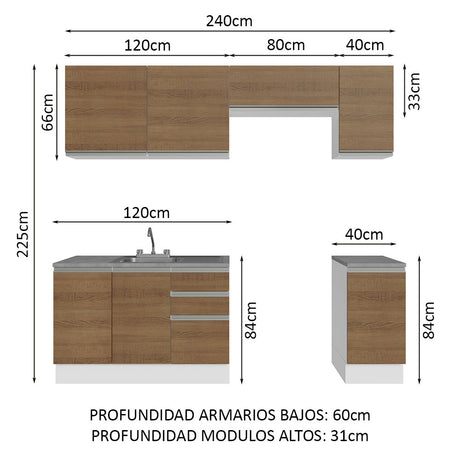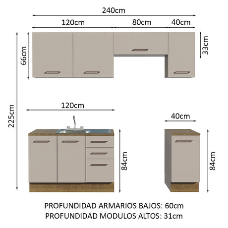 Cocina Integral con Accesorios 240 x 60cm Agata Marrón/...