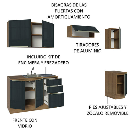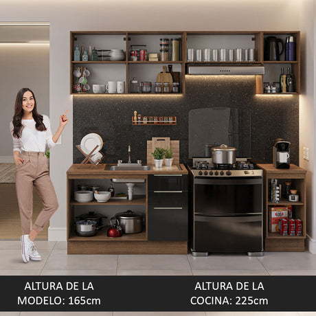 Cocina Integral con Accesorios 240cm Lux Marrón/Negro
