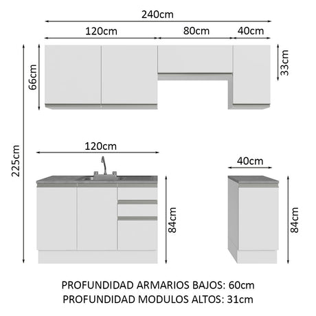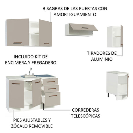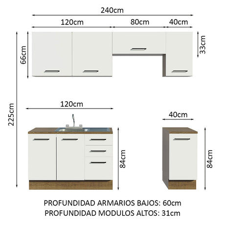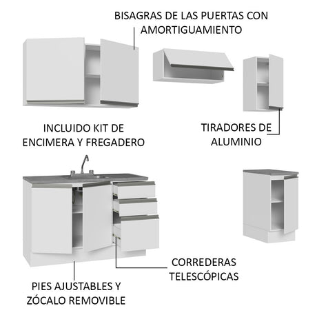 Cocina Integral con Accesorios 240 x 60cm Agata Blanco/...