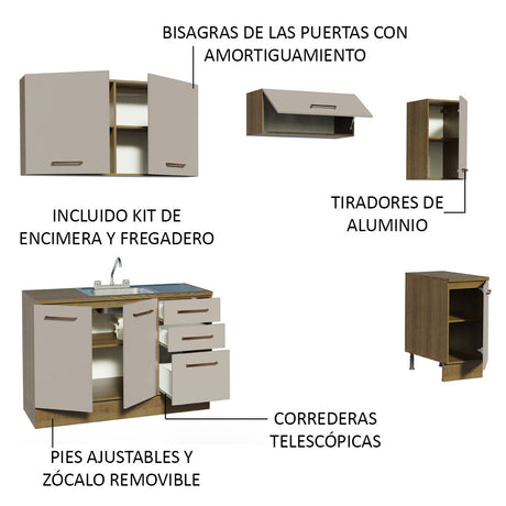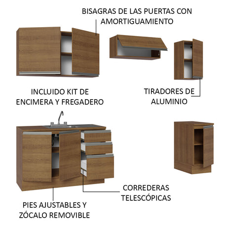 Cocina Integral con Accesorios 240cm Lux Marrón/Gris