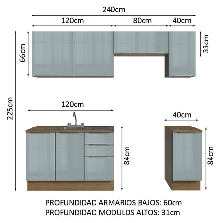 Cocina Integral con Accesorios 240cm Lux Blanco/Gris