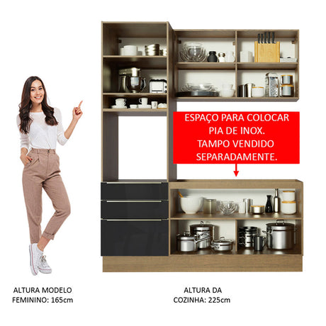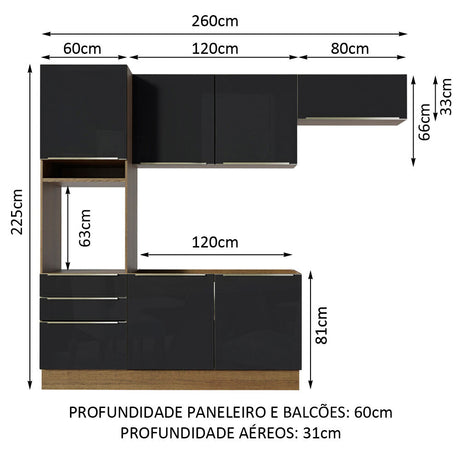 Cocina Integral 260 cm Lux Marrón/Negro 05