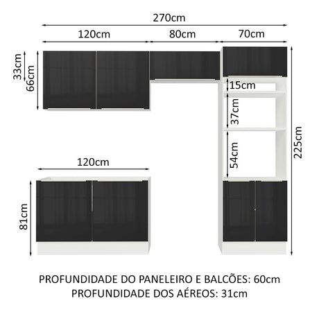 Cocina Integral 270 cm Lux Blanco/Negro 01