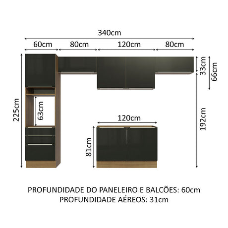 Cocina Integral 340 cm Lux Marrón/Negro 01