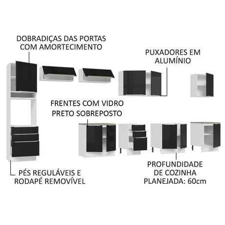 Cocina Integral 320 cm Lux Blanco/Negro 01