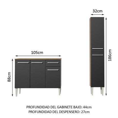 Cocina Compacta 137cm sin Fregadero Marrón/Negro Emilly...