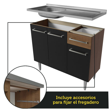 9x de $ 944.33 sin intereses13% OFF$ 8,49900$ 9,77300Precio unitario /Agotado Cocina Integral 229cm con Fregadero Marrón/Negro Emilly...