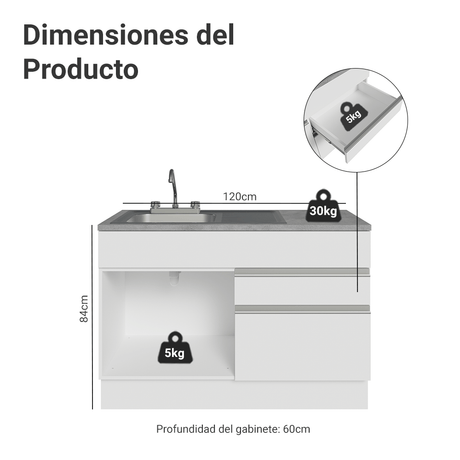 1x de $ 1,659.00 sin intereses30% OFF$ 1,65900$ 2,39880Precio unitario /Agotado Gabinete Bajo para Fregadero 120 cm 2 Puertas 3 Cajones...
