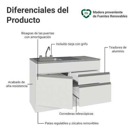 Gabinete Bajo 80 cm 2 Puertas (Con Encimera) Lux Blanco...