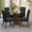 Las sillas son robustas, fabricadas con estructura en MDP y MDF y respaldo y asiento acolchados con espumas de alta densidad. El revestimiento es en tejido Suede Oxford, proporcionando suavidad y belleza.
