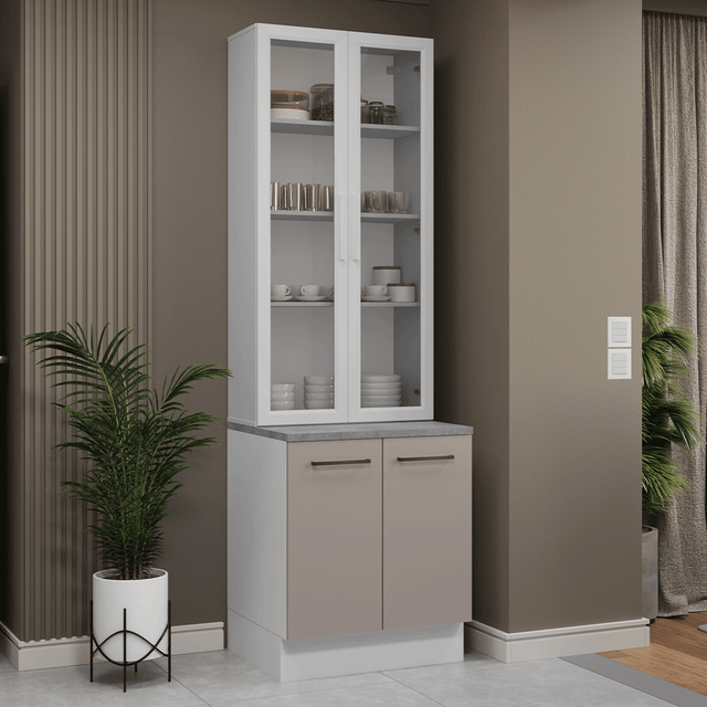 Este Kit con Mueble Bajo y Cristalero de la línea Agata de Madesa es la elección ideal para quienes buscan sofisticación y practicidad en el comedor o la cocina.