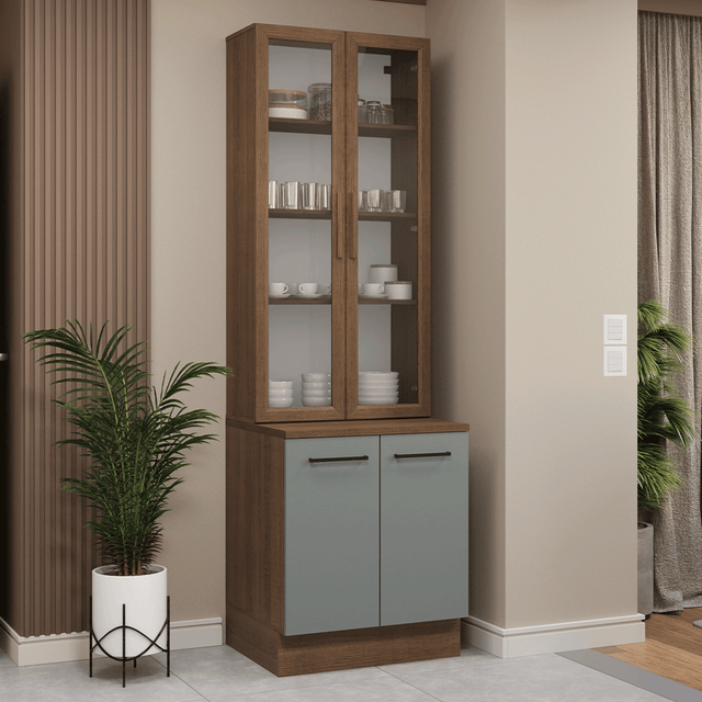 Kit Gabinete + Vitrina 70 cm Marrón/Gris Agata 02