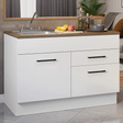 Este modelo se destaca por sus materiales de alta calidad y por la practicidad de ya obtener la tarja incluido.La encimera viene con el espacio listo para encajar la tarja de acero. Los tiradores son de aluminio y sus puertas cuentan con bisagras con amortiguación, que proporcionan un cierre suave y sin ruidos.
